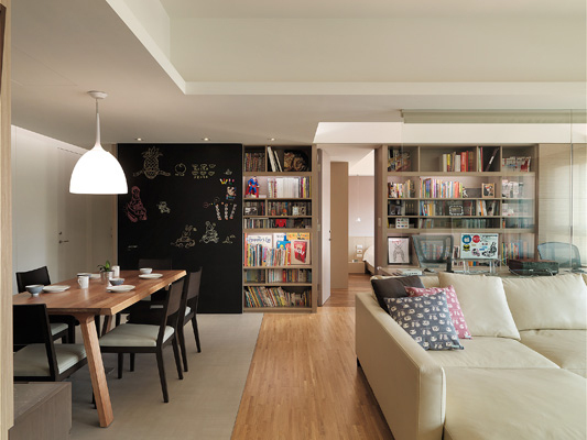 2013-9-22巴西一對年輕夫妻的公寓,共109平米·,ZoomUrbanismo建筑師事務(wù)所重新分配空間,將其整合成一個(gè)開(kāi)放的客餐廳,一整面墻的書(shū)柜,空與滿(mǎn)之間的動(dòng)態(tài)感,廚房與房間廚柜的像是星斗般散落的孔洞,取代了手柄的功能,也能保持內部通風(fēng)。老公寓也能很迷人。...[繼續閱讀] -